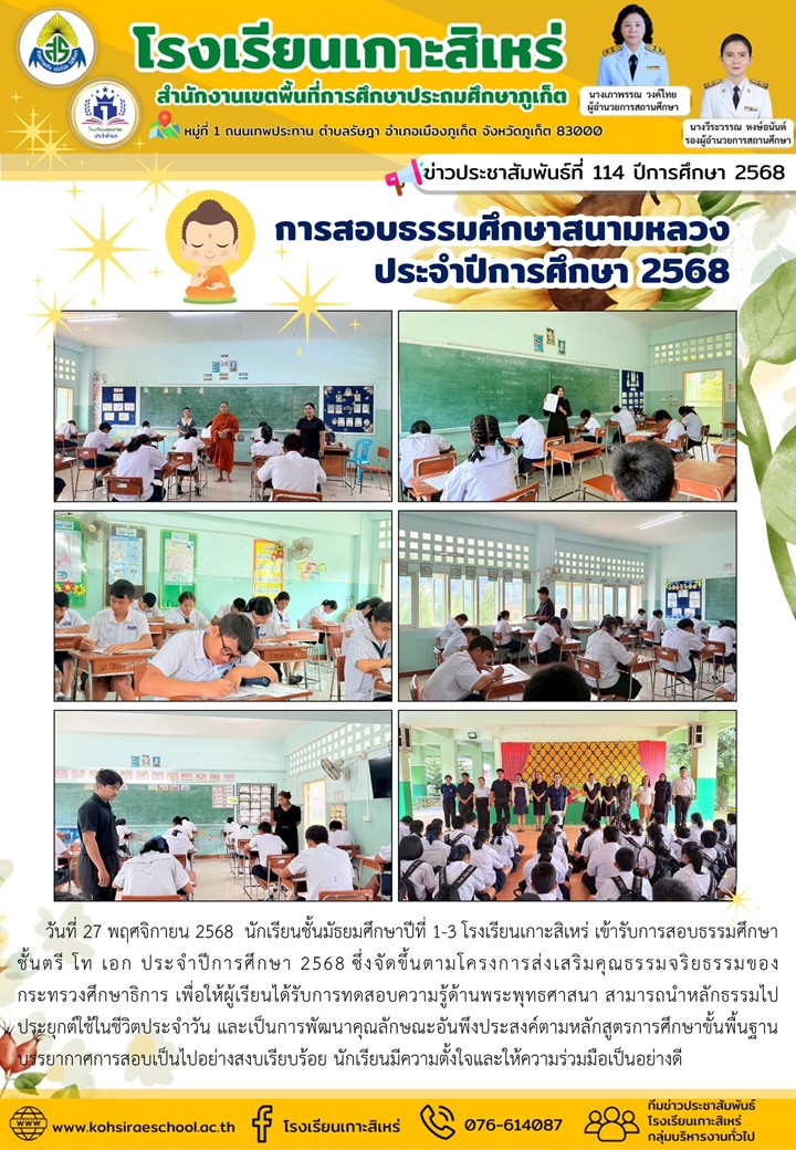 การสอบธรรมศึกษาสนามหลวง ประจำปีการศึกษา 2568