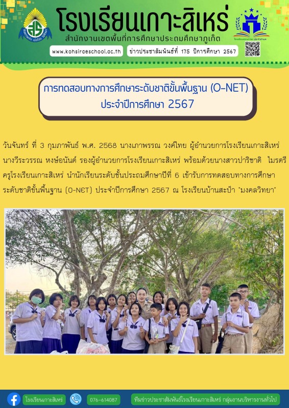 การทดสอบO-NET ป.6 ปีการศึกษา 2567
